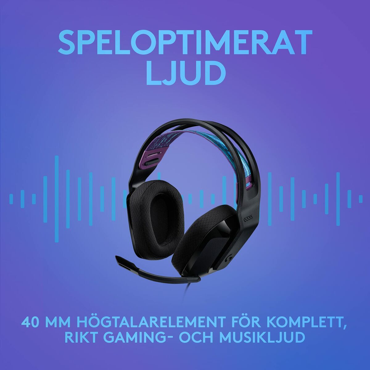 Logitech G G335. Τύπος προϊόντος: Ακουστικά, Φοριέται ως: Head-band, Προτεινόμενη χρήση: Παιχνίδι. Τεχνολογία συνδεσιμότητας: Καλωδιωμένος (Ενσύρματος). Συζεύξεις αυτιών: Circumaural, Συχνότητα ακουστικών: 20 – 20000 Hz, Αντίσταση: 36 Ω. Τύπος μικροφώνου: Μπούμα, Συχνότητα μικροφώνου: 100 – 10000 Hz, Τύπος κατεύθυνσης μικροφώνου: Μονής κατεύθυνσης. Πλάτος: 180 mm, Βάθος: 79 mm, Ύψος: 189 mm