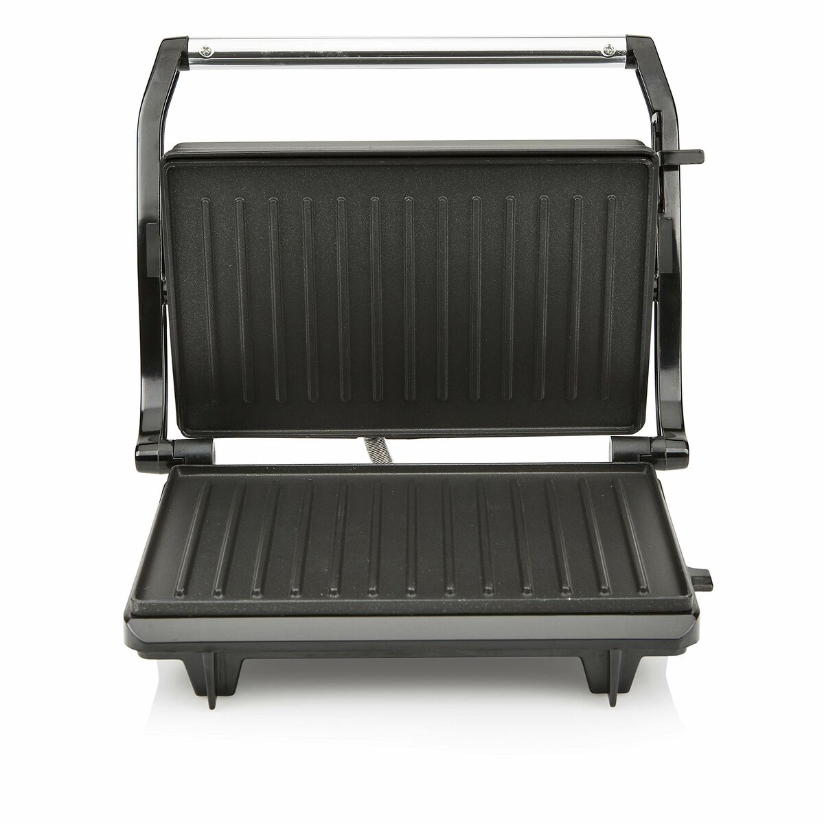 Tristar GR-2650. Χρώμα προϊόντος: Μαύρος (Μαύρο), Ανοξείδωτο ατσάλι, Τύπος μορφής: Ορθογώνιο, τύπος επιφάνειας κορυφής: Ταψί. Ισχύς: 700 W. Βάρος: 1,2 kg. Πλάτος συσκευασίας: 243 mm, Βάθος συσκευασίας: 288 mm, Ύψος συσκευασίας: 107 mm
