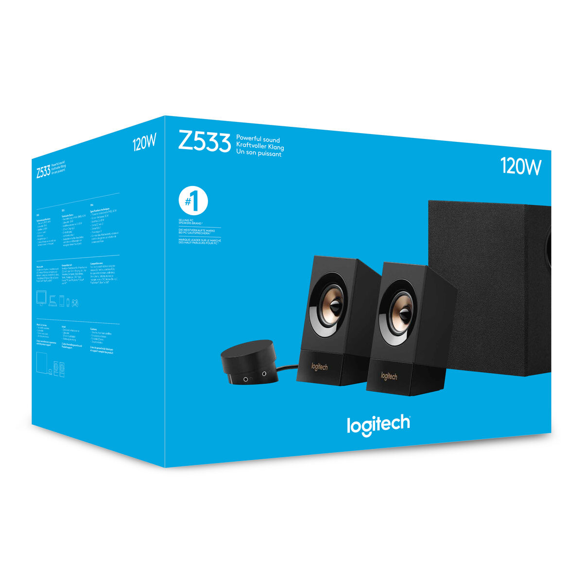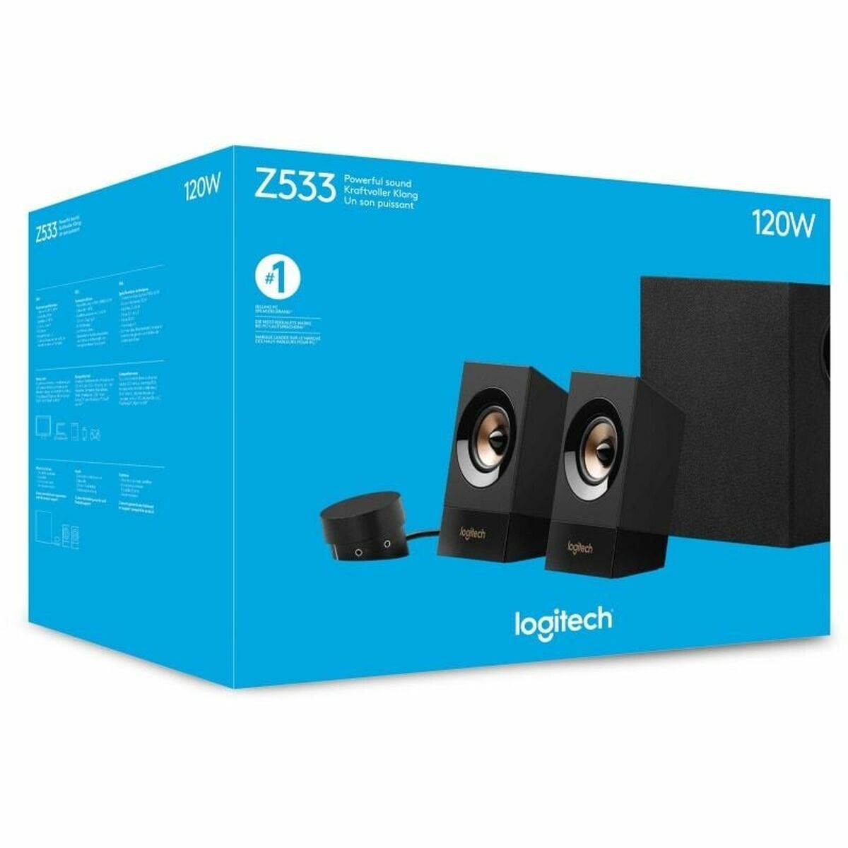 Logitech Z533. Κανάλια εξόδου ήχου: 2.1 κανάλια, RMS ονομαστική ισχύς: 60 W, Προτεινόμενη χρήση: Παγκόσμιος. Εύρος συχνοτήτων ενισχυτή: 55 – 20000 Hz. RMS ισχύς δορυφόρων: 15 W, Διάμετρος δορυφορικού βαθύφωνου ηχείου (woofer) (βρετανικές μονάδες): 6,6 cm (2.6″), Διαστάσεις δορυφορικών ηχείων (ΠxBxY): 100 x 85 x 170 mm. Τύπος subwoofer: Ενεργό subwoofer, Ενέργεια subwoofer RMS: 30 W, Διάμετρος οδηγού υποβαθύφωνου (subwoofer) (βρετανικές μονάδες): 13,3 cm (5.25″). Πηγή ισχύος: AC, Τάση εισόδου AC: 100-240 V, Συχνότητα εισόδου AC: 50 – 60 Hz