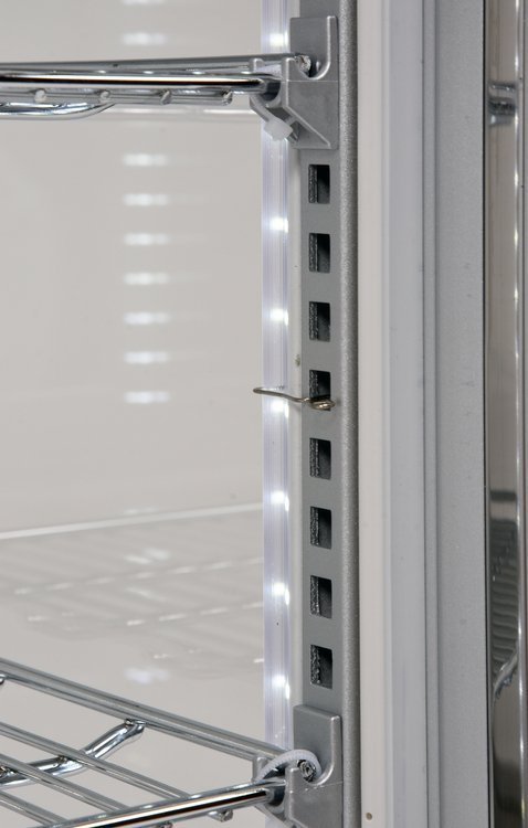 Η ψυκτική βιτρίνα YATO έχει χωρητικότητα 78L και έχειτρία ράφια ενισχυμένα και επικαλυμμένα με PVC με ρυθμιζόμενο ύψος στήριξης Η πρόσβαση σε αυτά είναι μέσω ανοιγόμενων γυάλινων πορτών. Είναι κατασκευασμένα από γυαλί διπλής στιβάδας, όπως το μπροστινό και το πλαϊνό γυαλί. Αυτό εξασφαλίζει υψηλή αντοχή και ταυτόχρονα πολύ καλές μονωτικές ιδιότητες.
