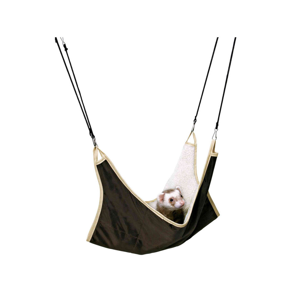 Η κρεβατοκάμαρα για γάτες Trixie είναι ένα αξεσουάρ σχεδιασμένο για να προσφέρει έναν άνετο και προστατευμένο χώρο για το κατοικίδιό σας, ιδανικό για κρέμασμα σε κλουβιά. Με περίπου διαστάσεις 45 × 45 εκ., αυτό το κρεβάτι συνδυάζει λειτουργικότητα και άνεση σε μια μορφή που προσαρμόζεται εύκολα σε διάφορα περιβάλλοντα για γάτες. Κατασκευάζεται από ανθεκτικά και μαλακά υλικά, χρησιμοποιώντας νάιλον στην εξωτερική του δομή για να εξασφαλίζει ανθεκτικότητα και εύκολο καθάρισμα, ενώ το εσωτερικό είναι επενδεδυμένο με φινίρισμα από συνθετικό γουνάκι που προσφέρει ζεστασιά και άνεση, προάγοντας την ξεκούραση του ζώου. Επιπλέον, περιέχει πολυεστέρα στη σύνθεσή του, συμβάλλοντας στην ελαφρότητα και την αντοχή στη φθορά. Ξεχωρίζει για την χρωματική του ποικιλία σε τόνους καφέ και μπεζ, ουδέτερα χρώματα που διευκολύνουν την αισθητική ενσωμάτωση σε διάφορους οικιακούς χώρους. Ο κρεμαστός σχεδιασμός δεν βελτιστοποιεί μόνο τον χώρο μέσα στο κλουβί, αλλά προσφέρει και στη γάτα σας έναν ψηλό και ασφαλή χώρο, σύμφωνα με τα φυσικά της ένστικτα για ξεκούραση και παρατήρηση. Συνολικά, το κρεβάτι Trixie συνδυάζει πρακτικές διαστάσεις, ποιοτικά υλικά και λειτουργικότητα ειδικά για γάτες, αποτελώντας μια πρακτική και άνετη επιλογή στην κατηγορία κρεβατιών για κατοικίδια.