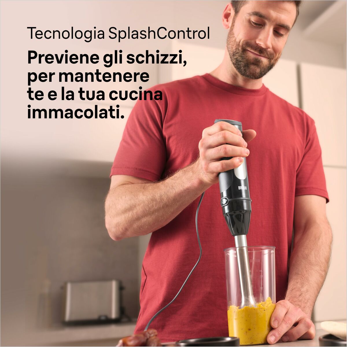 Η ραβδομπλέντερ MultiQuick 5 Pro MQ 55236 της Braun είναι ένας αναδευτήρας σχεδιασμένος για υψηλή απόδοση και ακρίβεια στην παρασκευή φαγητού, χάρη στον ισχυρό κινητήρα των 1000 W που διευκολύνει και επιταχύνει τη διαδικασία ανάμειξης και πολτοποίησης. Ενσωματώνει την καινοτόμο τεχνολογία PowerBell VPlus, η οποία με επιπλέον λεπίδα και έξι εσωτερικές νευρώσεις αυξάνει την επαφή με τα τρόφιμα, προσφέροντας έως και τέσσερις φορές πιο λεπτά αποτελέσματα σε σύγκριση με τα τυπικά μοντέλα. Ο χειροκίνητος επιλογέας 25 ταχυτήτων μαζί με τη λειτουργία turbo επιτρέπουν ακριβή και εξατομικευμένο έλεγχο, προσαρμοζόμενο σε διάφορα υλικά και υφές. Κατασκευασμένη από υλικά από ανοξείδωτο ατσάλι υψηλής ποιότητας και με εργονομικό σχεδιασμό με λεπτότερη λαβή στο πάνω μέρος, προσφέρει άνετο και ασφαλή χειρισμό κάθε στιγμή. Επιπλέον, διαθέτει την τεχνολογία SplashControl που αποτρέπει τις πιτσιλιές και διατηρεί την κουζίνα καθαρή κατά τη χρήση. Το σύστημα EasyClick Plus διευκολύνει την γρήγορη και εύκολη σύνδεση των αξεσουάρ, βελτιώνοντας την εμπειρία χρήσης και την ευελιξία. Έχει χωρητικότητα 500 ml, κατάλληλη για τις περισσότερες οικιακές εργασίες, και τα εξαρτήματά της είναι σχεδιασμένα να είναι κατάλληλα για πλυντήριο πιάτων, διευκολύνοντας τον καθαρισμό (σύμφωνα με το εγχειρίδιο οδηγιών). Ξεχωρίζει επίσης γιατί είναι χωρίς BPA σε όλα τα μέρη που έρχονται σε επαφή με τα τρόφιμα, εξασφαλίζοντας ασφάλεια και υγιεινή. Το φινίρισμα σε μαύρο χρώμα και η στιβαρή κατασκευή της εγγυώνται μοντέρνα αισθητική και ανθεκτικότητα. Η Braun MultiQuick 5 Pro MQ 55236 αποτελεί ένα προηγμένο και αξιόπιστο εργαλείο για όσους αναζητούν επαγγελματική ραβδομπλέντερ με υψηλή ισχύ, ακρίβεια και ευκολία χειρισμού στην κουζίνα.
