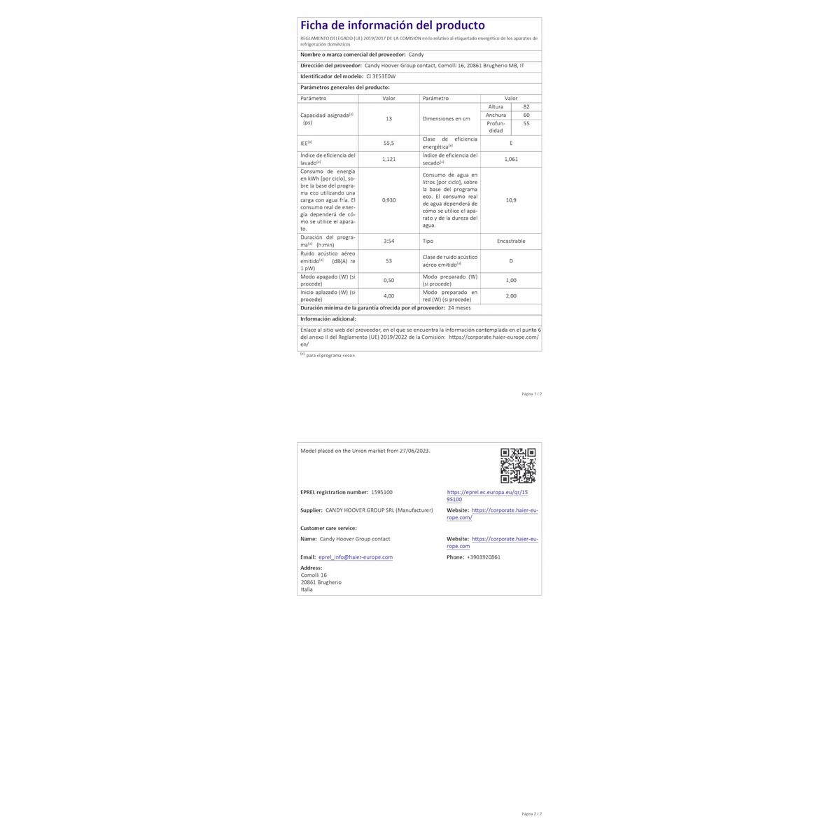 - Επίπεδο θορύβου: 53 dB