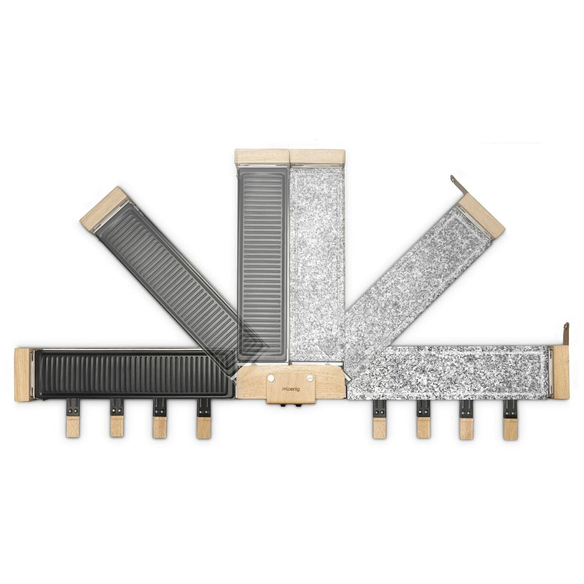 Η raclette Hkoenig WOD360 είναι μια πολυλειτουργική συσκευή σχεδιασμένη να προσφέρει μια ευέλικτη γαστρονομική εμπειρία, ιδανική για οικογενειακές ή φιλικές συγκεντρώσεις έως 8 ατόμων. Αυτή η raclette 3 σε 1 συνδυάζει τη δυνατότητα χρήσης ως παραδοσιακή raclette, φυσική πέτρα μαγειρέματος και ψηστιέρα, χάρη στον συμπαγή και λειτουργικό σχεδιασμό της. Με ισχύ 1400 W, εξασφαλίζει γρήγορη και ομοιόμορφη θέρμανση για να απολαμβάνετε ζεστό φαγητό κάθε στιγμή. Η επιφάνεια μαγειρέματος έχει διαστάσεις 41,5 x 21,2 εκ., παρέχοντας αρκετό χώρο για την προετοιμασία διαφόρων υλικών ταυτόχρονα. Ο σχεδιασμός της ξεχωρίζει για τη βάση που περιστρέφεται κατά 180°, διευκολύνοντας την πρόσβαση από οποιαδήποτε γωνία του τραπεζιού, και το πρακτικό σύστημα στερέωσης με ένα κομψό δερμάτινο λουράκι που ενώνει τα δύο μέρη της συσκευής. Η πέτρα μαγειρέματος είναι κατασκευασμένη από φυσικό υλικό, ιδανικό για υγιεινό και ομοιόμορφο ψήσιμο, ενώ η ψηστιέρα επιτρέπει το ψήσιμο κρεάτων, λαχανικών ή ψαριών με τραγανή υφή. Η κατασκευή σε καφέ και μαύρους τόνους προσδίδει μοντέρνο και ζεστό ύφος, ενσωματώνοντας εύκολα σε κάθε χώρο. Επιπλέον, η συσκευή περιλαμβάνει 8 αντικολλητικά τηγανάκια και 8 ξύλινες σπάτουλες για άμεση χρήση από κάθε χρήστη, διευκολύνοντας το χειρισμό και τον καθαρισμό, καθώς τόσο η πέτρα όσο και η ψηστιέρα αφαιρούνται εύκολα. Η ενσωμάτωση διακόπτη ενεργοποίησης/απενεργοποίησης επιτρέπει τον άνετο και ασφαλή έλεγχο της συσκευής. Η raclette Hkoenig WOD360 είναι ιδιαίτερα πρακτική για ανεπίσημα δείπνα τους κρύους μήνες, προσφέροντας ευελιξία στο μαγείρεμα και το μοίρασμα, συνδυάζοντας παραδοσιακές και σύγχρονες μεθόδους σε ένα μόνο μαγειρικό εργαλείο. Αυτή η συσκευή συνδυάζει αποτελεσματικότητα, σχεδιασμό και λειτουργικότητα για όσους αναζητούν μια ολοκληρωμένη λύση στην κατηγορία της.