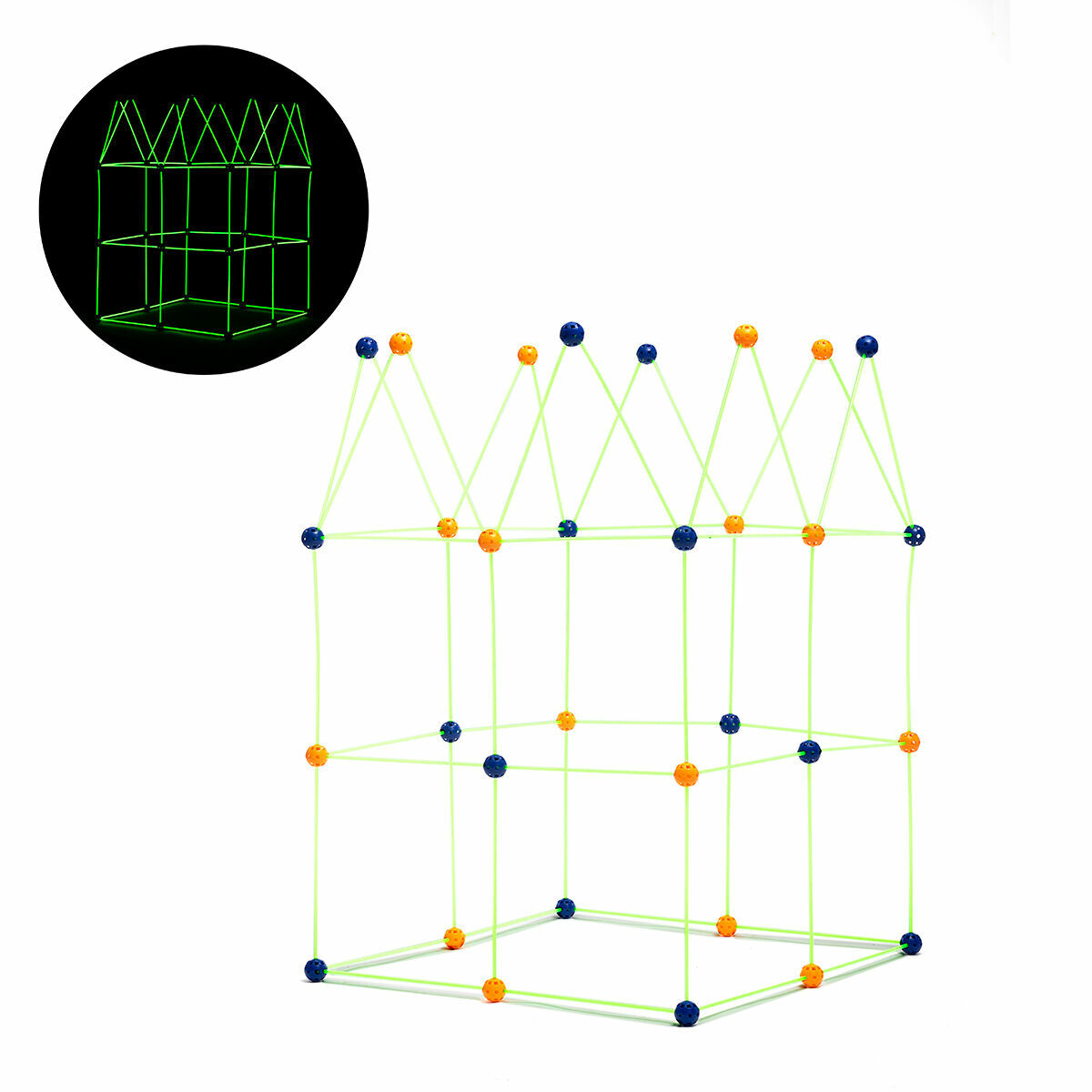- Σετ κατασκευής, 155 κομμάτια: Το σετ μας για την κατασκευή φρούριων περιλαμβάνει 55 σφαίρες με τρύπες σύνδεσης, 100 φωσφορίζουσες ράβδους, ύφασμα κάλυψης, τσάντα μεταφοράς για να αποθηκεύετε και να μεταφέρετε όλα τα κομμάτια άνετα και να αποφεύγετε την απώλεια των κομματιών, καθώς και ένα εγχειρίδιο με εικόνες παραδειγμάτων κατασκευών.