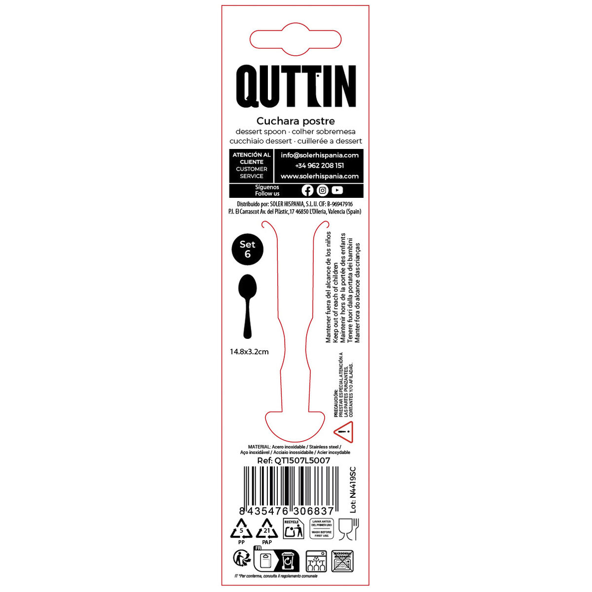 Αν ψάχνετε για καινούργια είδη της μόδας στην αγορά, σας παρουσιάζουμε Σετ κουτάλια για επιδόρπιο Quttin LOUVRE Ασημί 1,5 mm 14,8 x 3,2 cm 6 Τεμάχια (12 Μονάδες)!