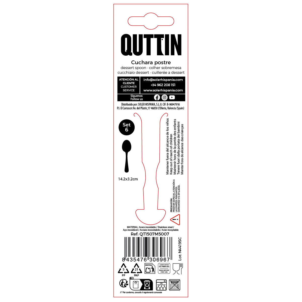 Εάν θέλετε να φροντίσετε κάθε λεπτομέρεια του σπιτιού σας, και να έχετε τα τελευταία μοντέλα της αγοράς, τα οποία θα σας διευκολύνουν, αγοράστε Σετ κουτάλια για επιδόρπιο Quttin MOMA Μαύρο 14,2 x 3,2 cm 6 Τεμάχια (12 Μονάδες) στην καλύτερη τιμή.