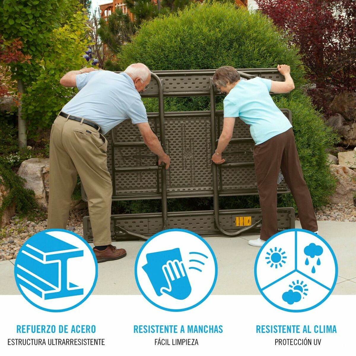 Το πτυσσόμενο τραπέζι Lifetime είναι ένα λειτουργικό και ανθεκτικό αξεσουάρ σχεδιασμένο για υπαίθριες δραστηριότητες, ιδανικό για πικνίκ και συναντήσεις με οικογένεια ή φίλους. Διαθέτει μεγάλες διαστάσεις 183 x 145 x 74 εκ., προσφέροντας αρκετό χώρο για μέχρι 8 άτομα, καθιστώντας το πρακτική λύση για μεσαίες ομάδες. Η κατασκευή του συνδυάζει ανθεκτικά υλικά όπως χάλυβα στη δομή, που εξασφαλίζει σταθερότητα και αντοχή, με την ανθεκτικότητα και ελαφρότητα του πλαστικού στην επιφάνεια, διευκολύνοντας τον καθαρισμό και τη συντήρηση. Η καφέ απόχρωση του προσδίδει ουδέτερο και ευέλικτο φινίρισμα που ταιριάζει σε διάφορα εξωτερικά περιβάλλοντα. Επιπλέον, ο πτυσσόμενος σχεδιασμός επιτρέπει συμπαγή αποθήκευση και εύκολη μεταφορά, βελτιστοποιώντας τον χώρο όταν δεν χρησιμοποιείται και διευκολύνοντας τη μετακίνησή του σε διαφορετικές τοποθεσίες. Κατασκευασμένο από τη Lifetime, μια αναγνωρισμένη μάρκα στον τομέα επίπλων εξωτερικού χώρου, αυτό το τραπέζι έχει σχεδιαστεί για να προσφέρει πρακτική και ανθεκτική εμπειρία σε υπαίθριες δραστηριότητες, συνδυάζοντας αντοχή, άνεση και λειτουργικότητα σε ένα προϊόν. Συνοπτικά, αποτελεί αξιόπιστη και βολική επιλογή για όσους αναζητούν ένα πτυσσόμενο τραπέζι πικνίκ που αντέχει στη συχνή χρήση και διευκολύνει τη διοργάνωση εξωτερικών συναντήσεων.