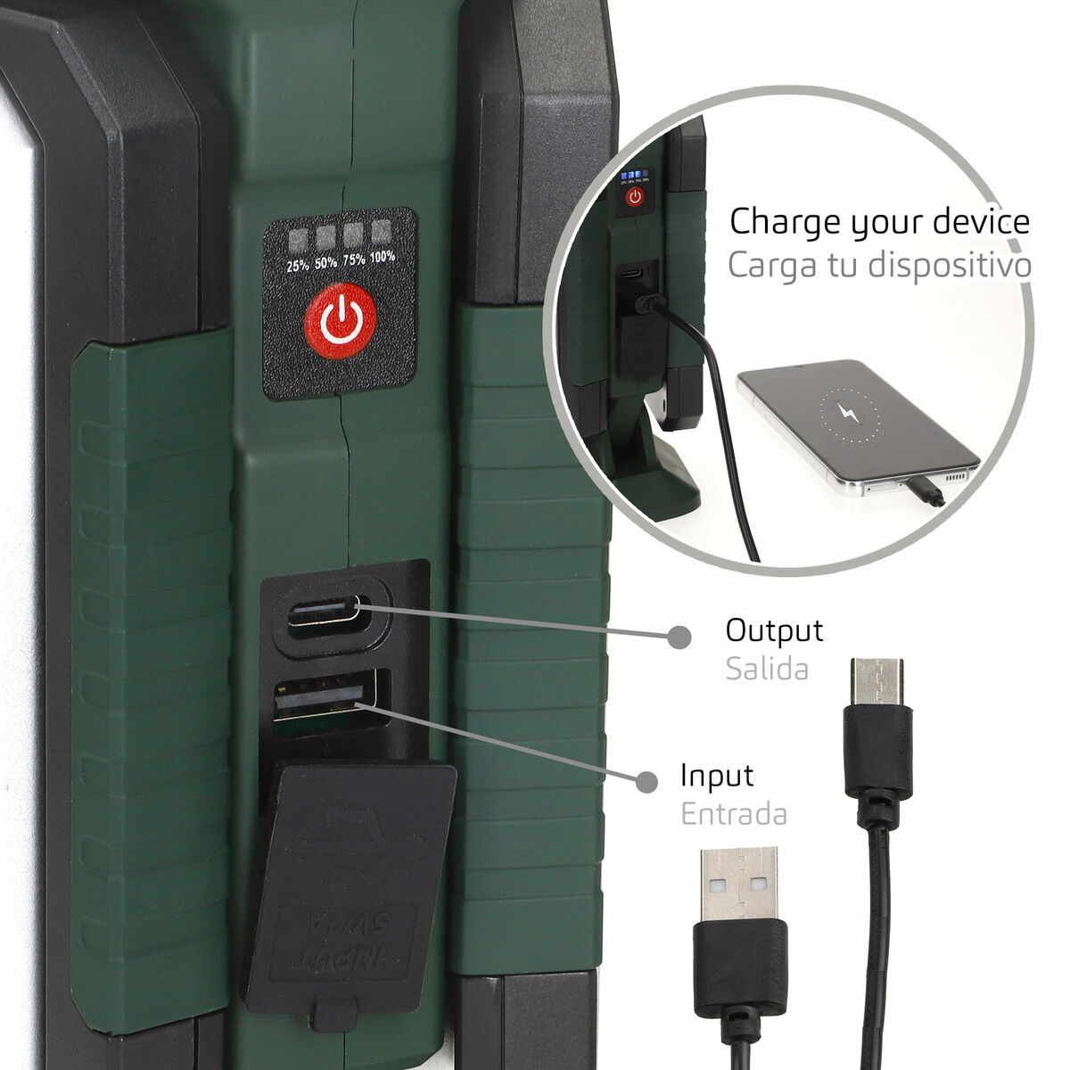 - 3 λειτουργίες φωτισμού: Φωτεινό, μεσαίο και φως που αναβοσβήνει