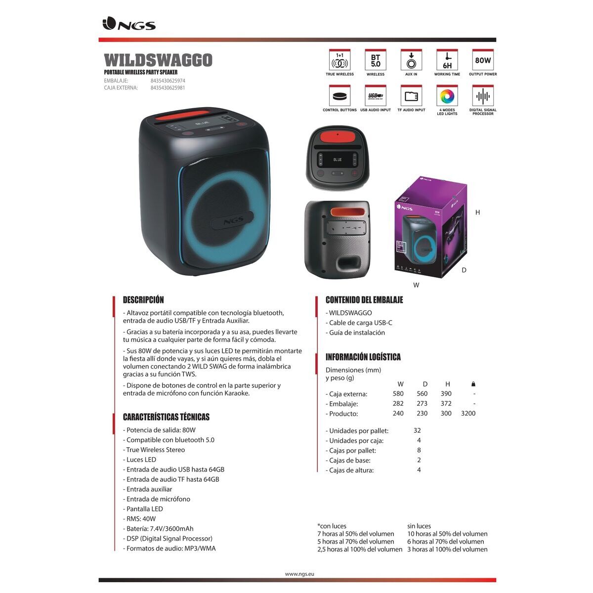 Το φορητό Bluetooth ηχείο WILDSWAGGO της NGS είναι μια συσκευή σχεδιασμένη ειδικά για χρήστες που αναζητούν ένα ισχυρό και πολυλειτουργικό ηχείο, προσανατολισμένο στον τομέα του gaming και της πολυμέσων. Με μέγιστη ισχύ εξόδου 80W και RMS ισχύ 40W, το ηχείο αυτό εξασφαλίζει ήχο υψηλής ποιότητας και σταθερό όγκο για μια καθηλωτική εμπειρία, ειδικά σε παιχνίδια ή περιβάλλοντα με αυξημένες ηχητικές απαιτήσεις. Ενσωματώνει την τεχνολογία Bluetooth 5.0, που προσφέρει σταθερή και γρήγορη σύνδεση με συμβατές συσκευές, καθώς και λειτουργία True Wireless Stereo για σύνδεση δύο μονάδων και λήψη στερεοφωνικού ήχου. Ο σχεδιασμός του σε μαύρο χρώμα ταιριάζει με κάθε gaming ή ψυχαγωγικό setup, ενώ η ανθεκτική μπαταρία 7.4V/3600mAh παρέχει παρατεταμένη αυτονομία για αδιάλειπτη χρήση. Το ηχείο διαθέτει πολλαπλές επιλογές φυσικής συνδεσιμότητας, όπως θύρες ήχου USB συμβατές έως 64GB, υποδοχή για κάρτες TF με ίδια χωρητικότητα, είσοδο auxiliary και υποδοχή μικροφώνου, ιδανικές για παιχνίδια, streaming ή καραόκε. Επιπλέον, διαθέτει οθόνη LED για εύκολο έλεγχο και προβολή λειτουργιών, καθώς και ενσωματωμένα LED φώτα που προσδίδουν μοντέρνο οπτικό εφέ. Ο επεξεργαστής DSP (Digital Signal Processor) βελτιστοποιεί τον ήχο μειώνοντας τις παραμορφώσεις και βελτιώνοντας την καθαρότητα, συμβατός με κοινά φορμά ήχου όπως MP3 και WMA. Η ευελιξία στις συνδέσεις και η ισχύς καθιστούν το NGS WILDSWAGGO κατάλληλο τόσο για εντατικό gaming όσο και για ψυχαγωγικές εκδηλώσεις ή μουσική εν κινήσει. Συνολικά, αυτό το φορητό ηχείο ξεχωρίζει για την ισορροπία μεταξύ ακουστικής απόδοσης, προηγμένης συνδεσιμότητας και πρακτικών χαρακτηριστικών, προσανατολισμένων σε χρήστες με δυναμικές ηχητικές ανάγκες και ευέλικτη διαμόρφωση.
