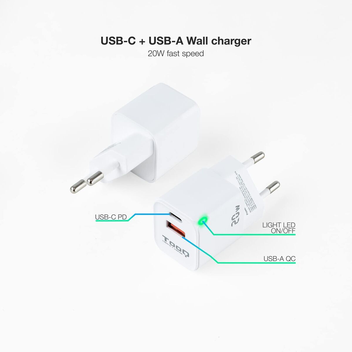 Ο φορτιστής τοίχου TooQ TQWC-QCPD20WT αποτελεί μια ευέλικτη επιλογή για όσους χρειάζονται γρήγορη και αποτελεσματική φόρτιση πολλαπλών συσκευών σε οικιακούς ή επαγγελματικούς χώρους. Αυτό το μοντέλο, κατασκευασμένο από ανθεκτικό λευκό πλαστικό, συνδυάζει αντοχή με κομψό και συμπαγή σχεδιασμό, ιδανικό για μεταφορά σε τσάντες ή σακίδια. Ξεχωρίζει για τη γενική συμβατότητά του, διαθέτοντας μία θύρα USB-C και μία θύρα USB-A (USB 2.0), επιτρέποντας ταυτόχρονη φόρτιση διαφόρων smartphones, tablets, ακουστικών και άλλων σύγχρονων ηλεκτρονικών συσκευών. Η μέγιστη ισχύς των 20W εξασφαλίζει αποδοτική φόρτιση σύμφωνα με τα σύγχρονα πρότυπα ταχείας φόρτισης, μειώνοντας τον χρόνο και προστατεύοντας τις συσκευές από υπερφόρτωση χάρη στην ποιοτική κατασκευή του. Ο σχεδιασμός του με διαστάσεις περίπου 28 mm τον καθιστά διακριτικό και εύκολα μεταφερόμενο αξεσουάρ, ιδανικό για χρήση στην Ισπανία και σε συμβατικές ηλεκτρικές εγκαταστάσεις. Η δομή και οι συνδέσεις του διευκολύνουν την προσαρμογή στις ανάγκες χρηστών που εκτιμούν τη λειτουργικότητα και την αξιοπιστία στα τεχνολογικά αξεσουάρ, ειδικά στην κατηγορία των καθολικών φορτιστών για φορητές συσκευές. Συνολικά, το μοντέλο TooQ προσφέρει πρακτική και στιβαρή λύση για φόρτιση πολλών συσκευών σε κάθε περίσταση, εξασφαλίζοντας άνεση και αποτελεσματικότητα στην καθημερινότητα.