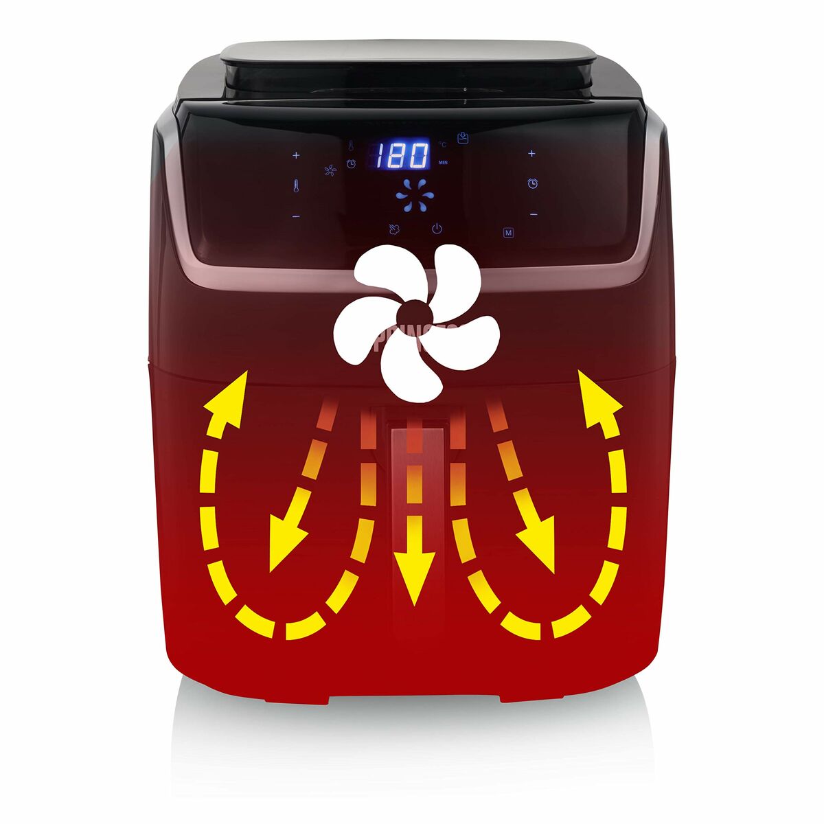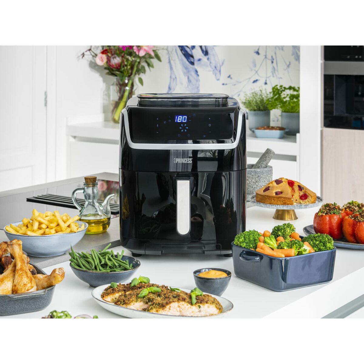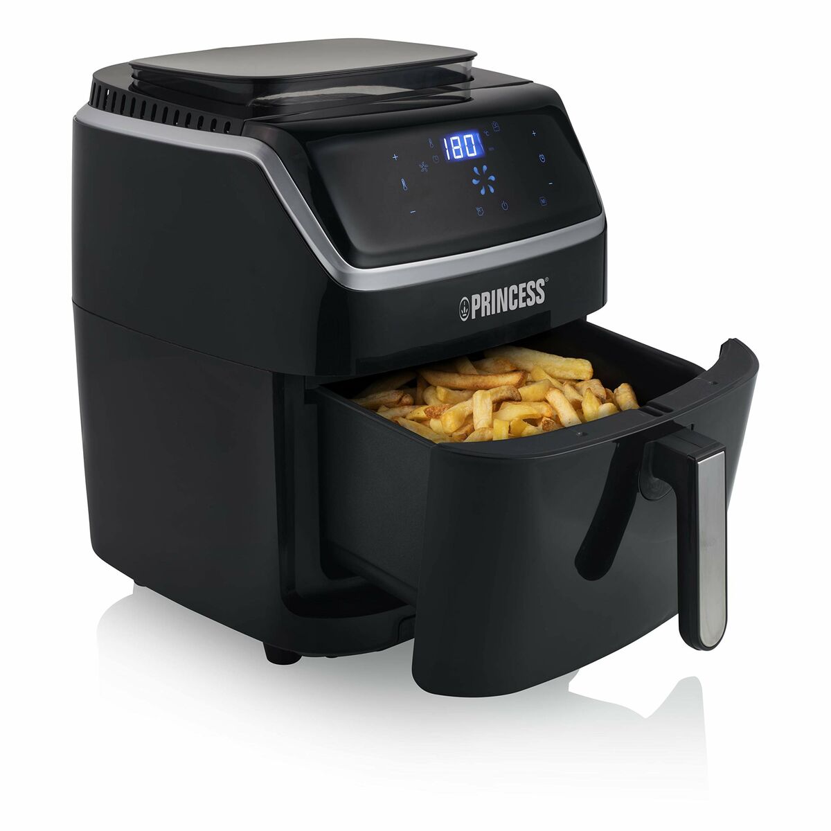 Η φριτέζα αέρα Princess μοντέλο 182080 είναι μια ευέλικτη συσκευή που συνδυάζει την πρακτικότητα μιας φριτέζας με τη λειτουργία ατμού, επιτρέποντας πιο υγιεινό και γρήγορο μαγείρεμα. Με ισχύ 1700 W, αυτή η φριτέζα εξασφαλίζει αποδοτική και ομοιόμορφη θέρμανση για βέλτιστα αποτελέσματα σε κάθε παρασκευή. Η χωρητικότητα 6,5 λίτρα είναι ιδανική για οικογένειες, προσφέροντας αρκετό χώρο για μεγάλες ποσότητες φαγητού σε μία δόση, από λαχανικά και κρέατα έως πλήρη πιάτα. Ο σχεδιασμός σε μαύρο χρώμα και τα ανθεκτικά υλικά όπως το πλαστικό ABS προσφέρουν αντοχή και εύκολο καθάρισμα, μαζί με μοντέρνο φινίρισμα που ταιριάζει σε κάθε κουζίνα. Διαθέτει αυτόματο απενεργοποιητή που αυξάνει την ασφάλεια κατά τη χρήση, αποφεύγοντας υπερθερμάνσεις και διευκολύνοντας τον έλεγχο του χρόνου μαγειρέματος. Η τροφοδοσία γίνεται μέσω ευρωπαϊκής πρίζας (EU plug), συμβατής με τις περισσότερες οικιακές εγκαταστάσεις στην Ισπανία και την Ευρώπη. Αυτή η πολυλειτουργική συσκευή, εκτός από το γρήγορο και υγιεινό τηγάνισμα με ζεστό αέρα χωρίς μεγάλη ποσότητα λαδιού, επιτρέπει και μαγείρεμα στον ατμό, διευρύνοντας τις γαστρονομικές επιλογές και υποστηρίζοντας μια πιο ισορροπημένη διατροφή. Συνοπτικά, η φριτέζα αέρα Princess 182080 προσφέρει ισορροπία μεταξύ λειτουργικότητας και πρακτικότητας, αποτελώντας αποδοτική λύση για όσους θέλουν να βελτιώσουν το καθημερινό μαγείρεμα με μια ανθεκτική και εύχρηστη συσκευή.