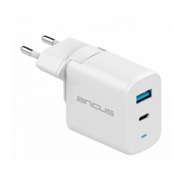 Φορτιστής Ταξιδίου Ancus Supreme Series Dual με USB και USB-C PD 30W για Κινητά & Φορητούς Υπολογιστές Λευκός με ένδειξη LED και Αντάπτορα UK Plug. Ο πανίσχυρος Dual φορτιστής της σειράς Supreme Series που εξασφαλίζει ταχεία φόρτιση fast charging PD για όλες τις συσκευές σας, κινητά, tablets και φορητούς υπολογιστές. Με θύρα USB-A και USB-C για παράλληλη φόρτιση των συσκευών σας, ενώ παράλληλα διαθέτει διακριτική μπλε LED ένδειξη όταν είναι στο ρεύμα. Είσοδος: AC100-240V. Output: USB-A / USB-C: DC 5V 3A, 9V 3A, 12V 3A, 15V 2.8A, 20V 2.1A. 30W. Πιστοποιημένο: CE, FCC, RoHS, Reach