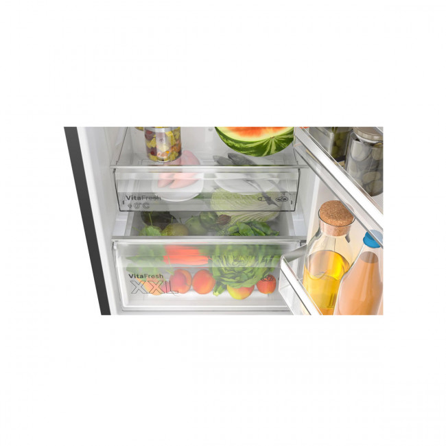 Το ευρύχωρο σύστημα αποθήκευσης και φρεσκάδας VitaFresh XXL (0°C) που διαθέτει ο ψυγειοκαταψύκτης της Bosch, προσφέρει το κατάλληλο περιβάλλον αποθήκευσης για όλα τα φρέσκα τρόφιμα. Πιο συγκεκριμένα, διατηρεί τις χαμηλές θερμοκρασίες που απαιτούνται στο ψάρι και το κρέας, ενώ επίσης κρατάει φρέσκα τα φρούτα και τα λαχανικά σας για μεγαλύτερο χρονικό διάστημα.