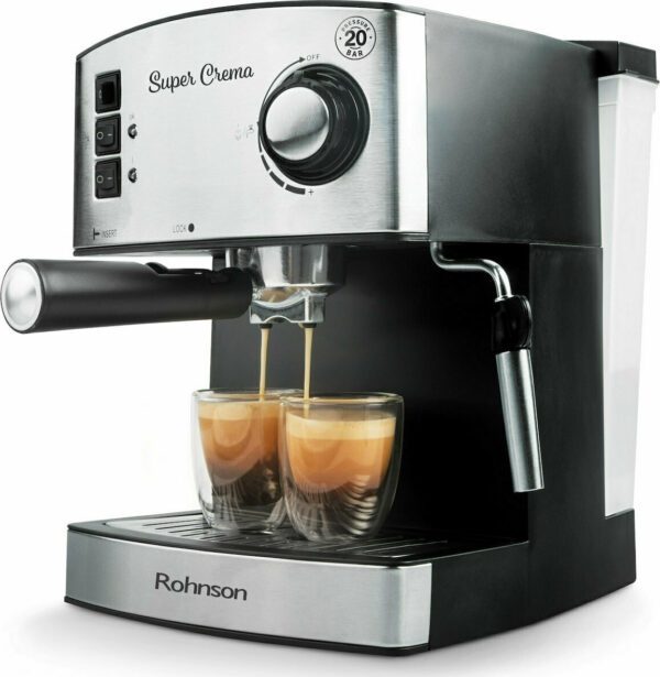 Διαθέτει διαφανές δοχείο νερού χωρητικότητας 1,2 λίτρων, βαλβίδα ασφαλείας για εκτόνωση του ατμού και επιφάνεια ζεστάματος φλιτζανιών καφέ.