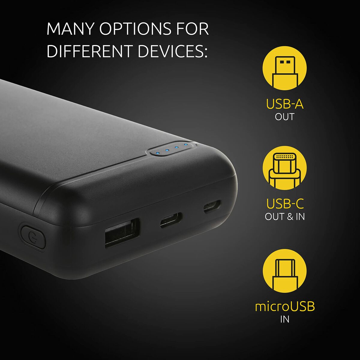 Το powerbank INTENSO XS20000 είναι μια φορητή συσκευή σχεδιασμένη για να προσφέρει αξιόπιστη και επαρκή πηγή ενέργειας για τη φόρτιση πολλαπλών ηλεκτρονικών συσκευών κατά τη διάρκεια της ημέρας. Εξοπλισμένο με χωρητικότητα μπαταρίας 20000 mAh, εξασφαλίζει μεγάλη αυτονομία ικανή να πραγματοποιήσει πλήρεις φορτίσεις σε smartphones, tablets ή άλλες συμβατές συσκευές, ιδανικό για χρήστες που χρειάζονται συνεχή ενέργεια εν κινήσει. Το φινίρισμά του σε μαύρο χρώμα προσδίδει λιτό και ευέλικτο σχεδιασμό, ενώ η ύπαρξη διαφόρων συνδέσεων διευκολύνει τη συμβατότητα με διαφορετικά καλώδια και gadgets: διαθέτει θύρες USB-A, USB-C και συνδυάζει τη λειτουργία USB-A – USB-C για μεγαλύτερη ευελιξία στη φόρτιση και σύνδεση. Επιπλέον, ενσωματώνει διακόπτη ενεργοποίησης/απενεργοποίησης που διευκολύνει τον έλεγχο της συσκευής και βοηθά στη βελτιστοποίηση της κατανάλωσης όταν δεν χρησιμοποιείται. Για καλύτερη εμπειρία χρήστη, διαθέτει ενσωματωμένη οθόνη που εμφανίζει σημαντικές πληροφορίες για την κατάσταση της μπαταρίας και τη διαδικασία φόρτισης, επιτρέποντας ακριβή έλεγχο του υπολοίπου ενέργειας. Αυτός ο φορητός φορτιστής είναι συμβατός με ευρύ φάσμα συσκευών που χρησιμοποιούν συνδέσεις USB, διευκολύνοντας την ενσωμάτωσή του σε περιβάλλοντα με διαφορετικές συσκευές και καλώδια. Συνολικά, το INTENSO XS20000 αποτελεί ένα πρακτικό και ισχυρό powerbank, κατάλληλο για όσους χρειάζονται αξιόπιστη, αποδοτική και εύχρηστη εξωτερική μπαταρία σε κάθε κατάσταση κινητικότητας.